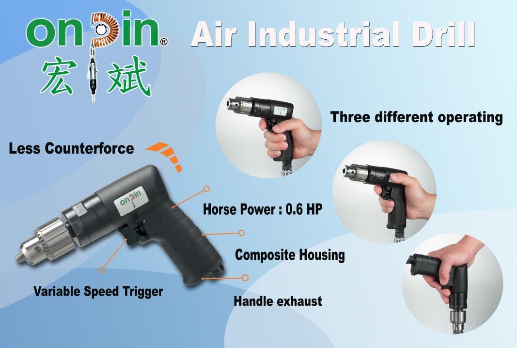 ● Industrial-grade air drill with 0.6 HP power